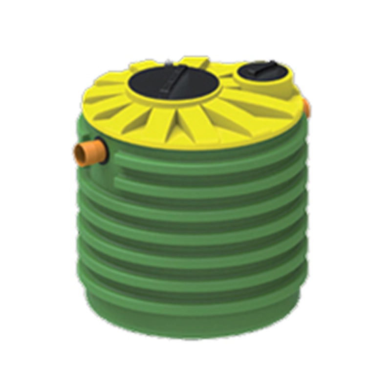 Fosa corrugada y cono interior de polietileno lineal monobloque (LLDPE) con troncos de entrada y salida de PVC; cuerpos de relleno de superficie alta específicos de PP.
