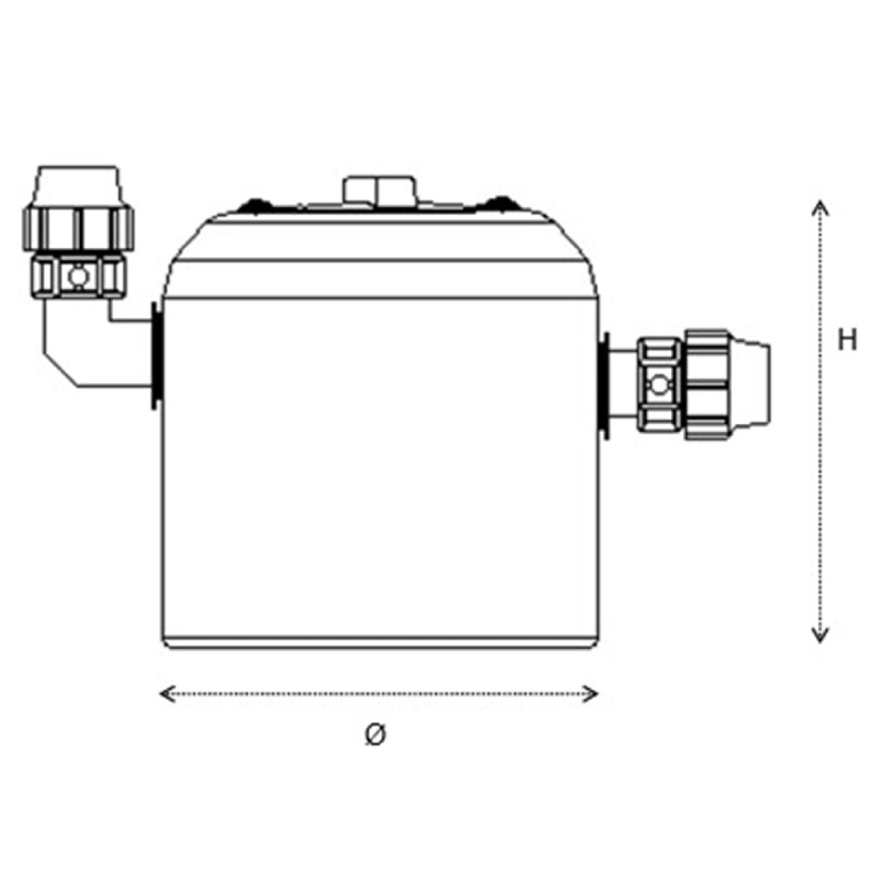 Las medidas equivalen a: Vol. útil (l) × Altura (mm) × Entrada/Salida (mm) × Ø Tapa (mm).